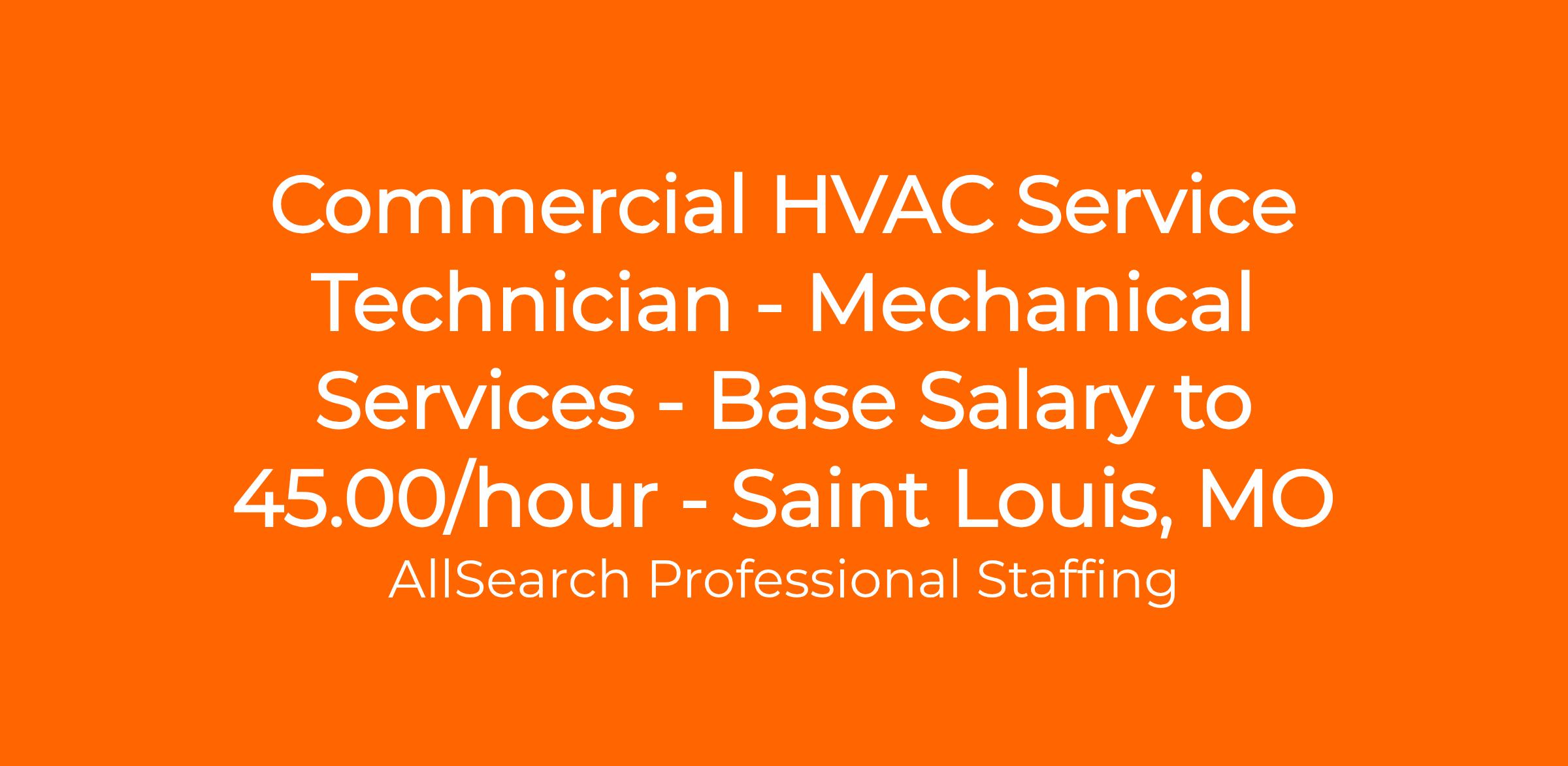 Commercial HVAC Service Technician - Mechanical Services - Base Salary to 45.00/hour - Saint Louis, MO
