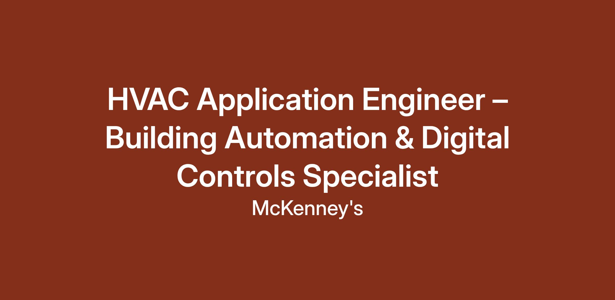 McKenney's is a leader in delivering complex, high-quality mechanical systems for commercial, healthcare, and high-tech sectors. We are seeking a highly motivated HVAC Application Engineer focused on the critical discipline of Building Automation Systems (BAS).