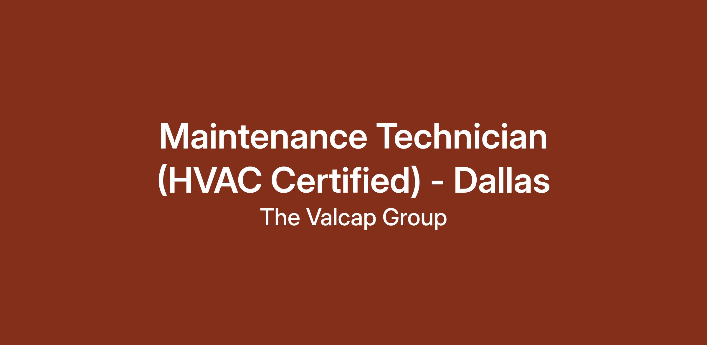 Now Hiring: Maintenance Technician (HVAC Certified)