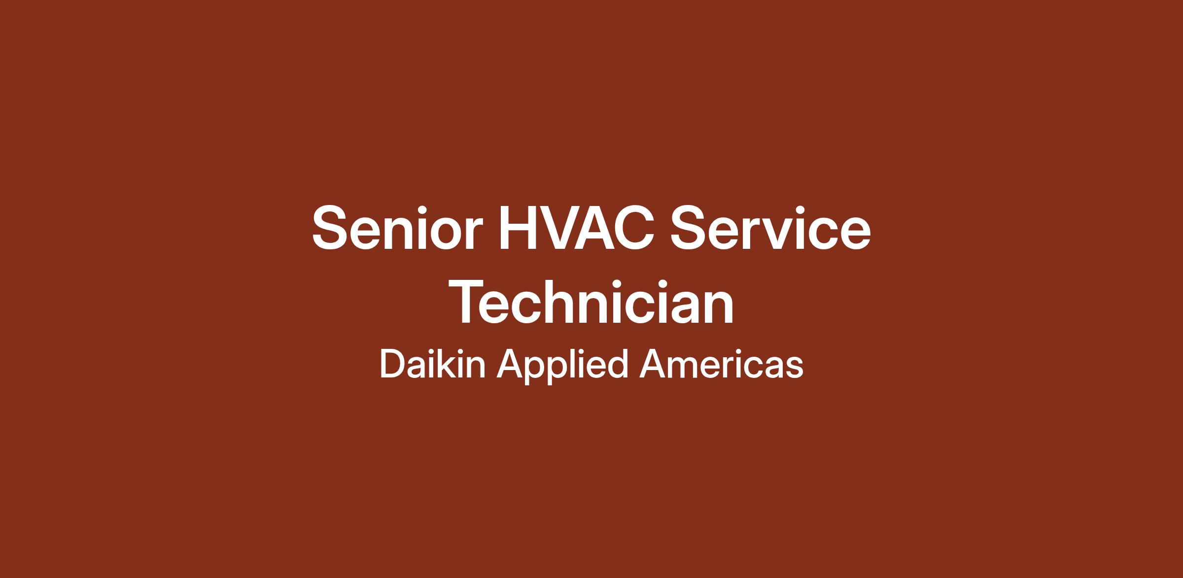 Daikin Applied is seeking a full-time Senior HVAC Technician. In this role, you will be responsible for diagnosing, repairing, and performing preventative maintenance for commercial and industrial HVAC equipment. The responsibilities will increase based on exposure to tasks, ability to develop troubleshooting skill set, and consistent and accurate completion of assignments. The HVAC equipment you will be servicing includes but is not limited to large and small rooftop units, split systems, chillers, and boilers. Come be a part of an exciting journey at Daikin Applied, where innovation and excellence drive our every endeavor!