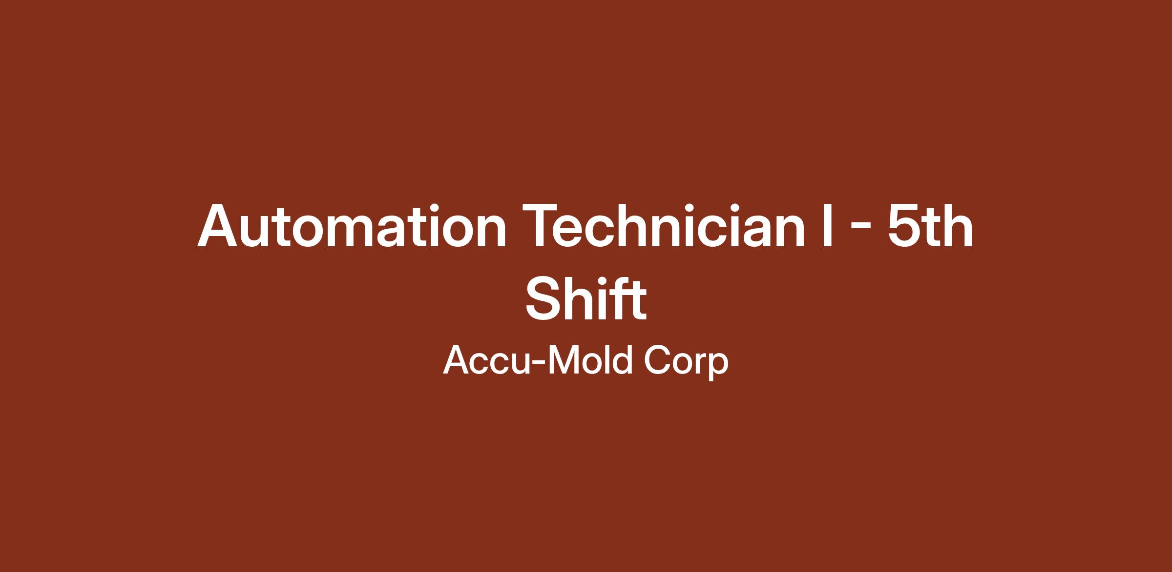 Automation Technician I - 5th Shift