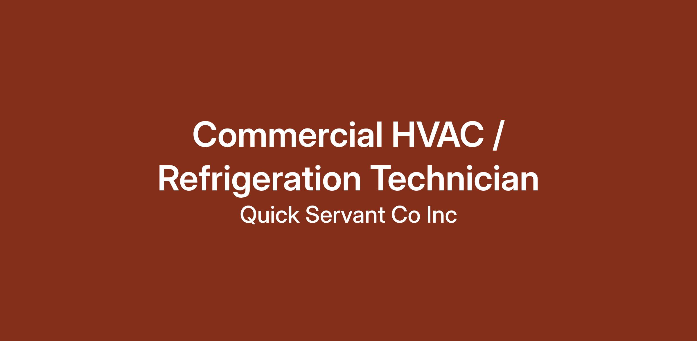 Quick Servant Company, Inc. is a leading provider of HVAC, cooking equipment, and refrigeration solutions for commercial clients. We are accepting applicants with Masters, Journeyman, and Apprentice license, or relevant experience in commercial HVAC and refrigeration field. Our office is in Delmar, DE.