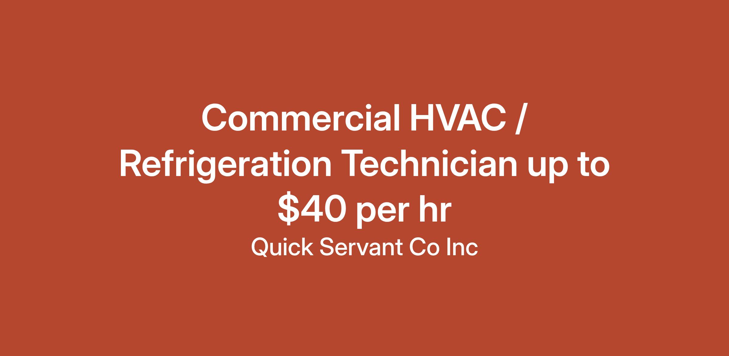 Quick Servant Company, Inc. is a leading provider of HVAC, cooking equipment, and refrigeration solutions for commercial clients. We are accepting applicants with Masters, Journeyman, and Apprentice license, or relevant experience in commercial HVAC and refrigeration field. Our office is in Columbia, MD.