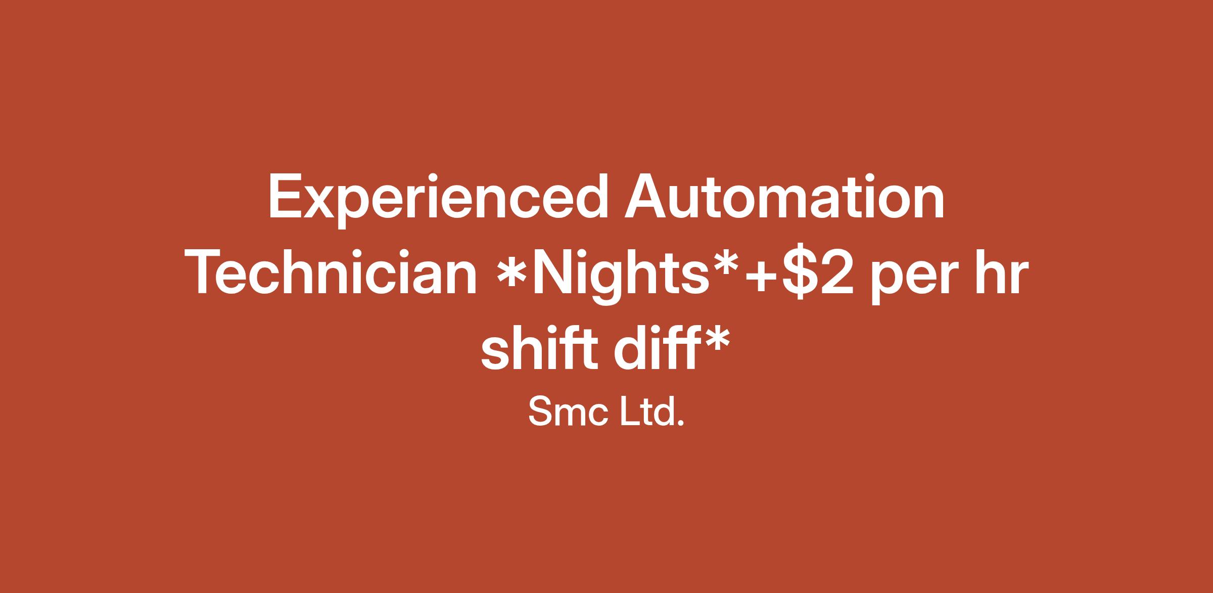 Experienced Automation Technician *Nights*+$2 per hr shift diff*