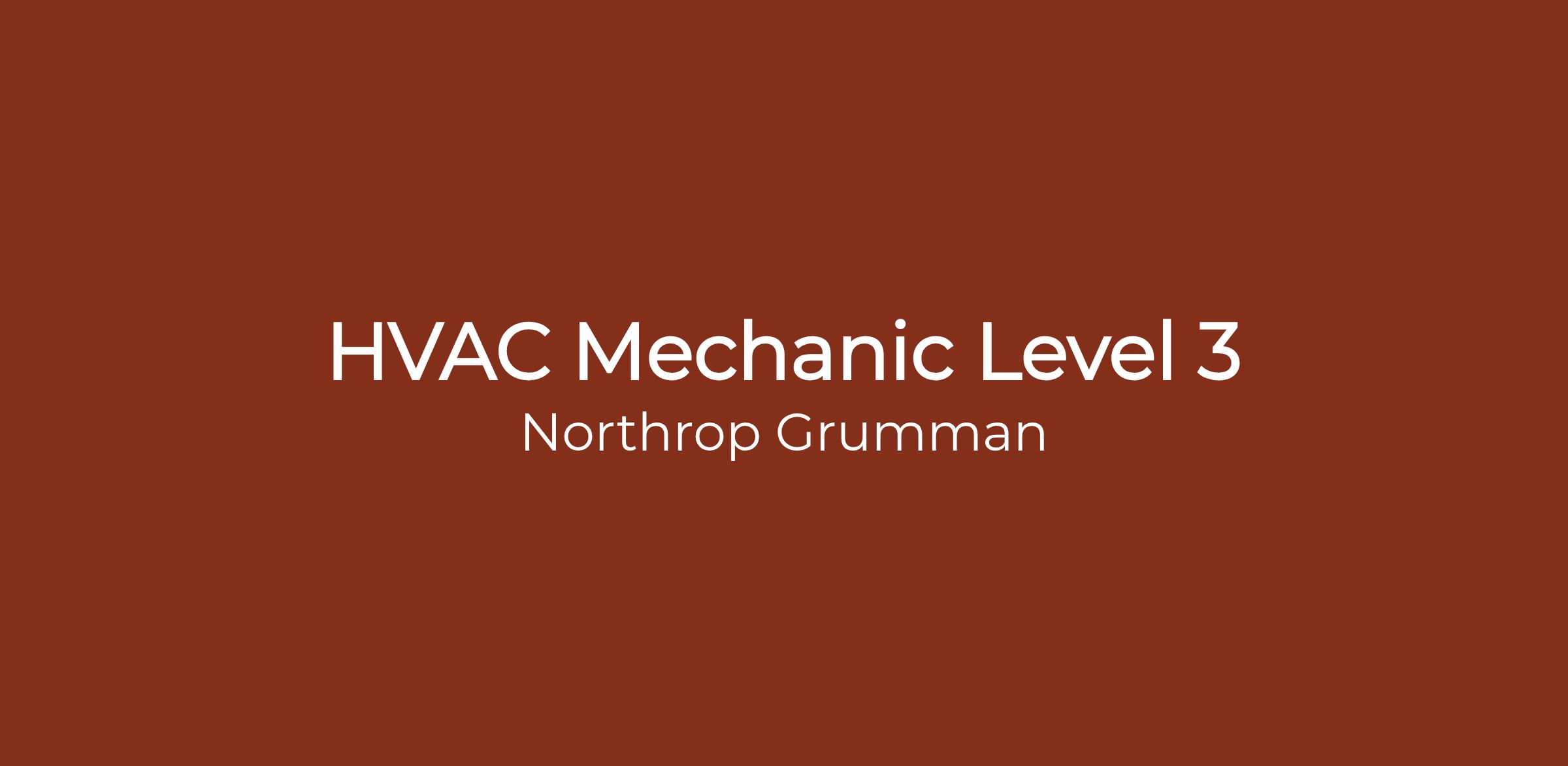 Northrop Grumman is seeking an HVAC Mechanic Level 3 to to join our team of qualified, diverse individuals! This position will be on site supporting our South Bay California Facilities in El Segundo, CA.