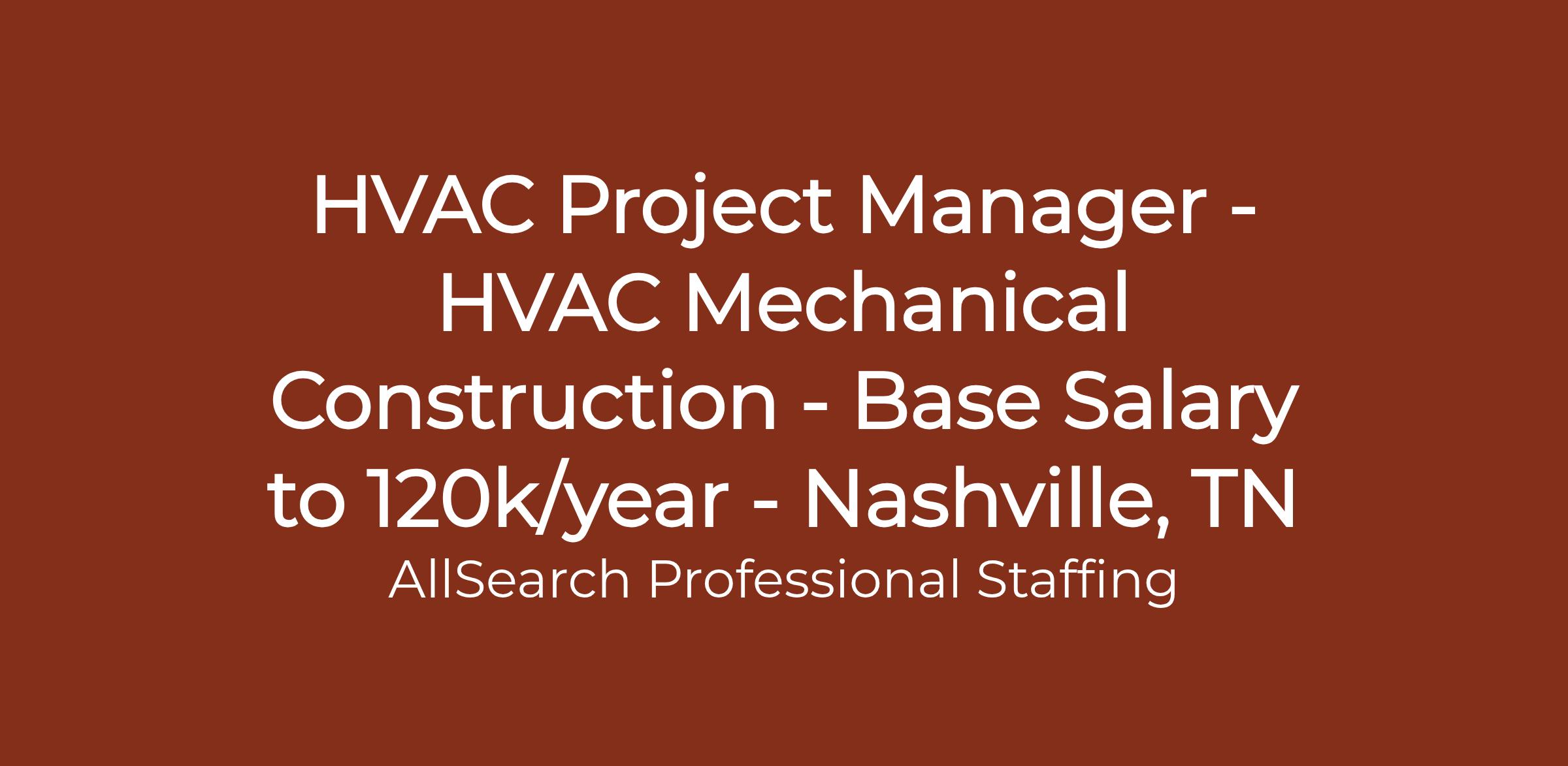 HVAC Project Manager - HVAC Mechanical Construction - Base Salary to 120k/year - Nashville, TN