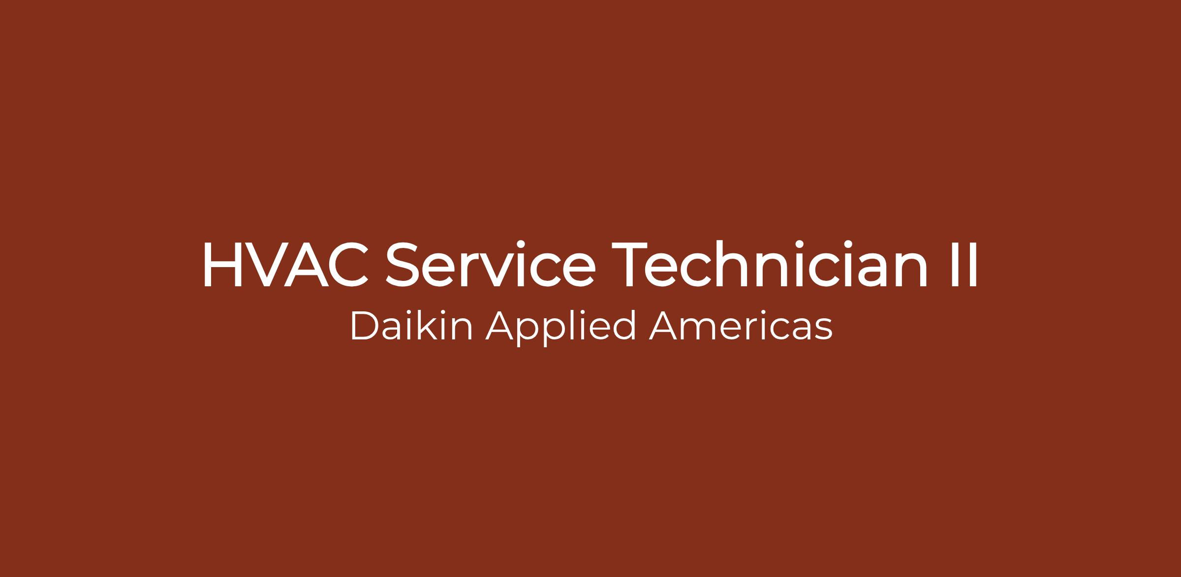 Daikin Applied is seeking a Service Technician II. In this role, you will be responsible for diagnosing, repairing, and performing preventative maintenance for commercial and industrial HVAC equipment. The responsibilities will increase based on exposure to tasks, ability to develop troubleshooting skill set, and consistent and accurate completion of assignments. The HVAC equipment you will be servicing includes but is not limited to large and small rooftop units, split systems, chillers, and boilers. Come be a part of an exciting journey at Daikin Applied, where innovation and excellence drive our every endeavor!