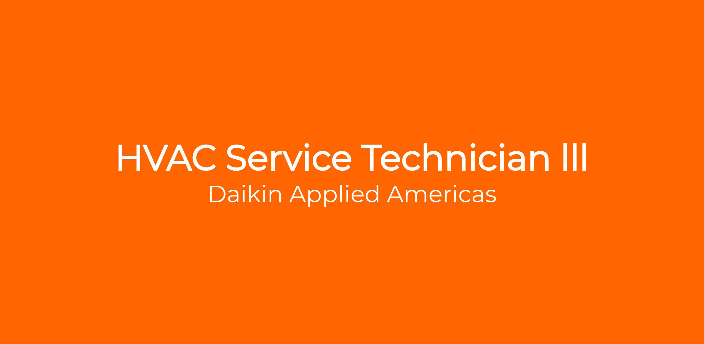 Daikin Applied is seeking a full-time HVAC Service Technician III. You’ll have the opportunity to work on all types of commercial and industrial equipment and cutting-edge technologies. Receive comprehensive training through in-person, online, and on-the-job programs. The equipment you’ll service includes, but is not limited to, large and small rooftop units, mini-split systems, chillers, and boilers. Make an impact and shape your career with a company passionate about growth. Come be part of an exciting journey at Daikin Applied, where innovation and excellence drive everything we do!