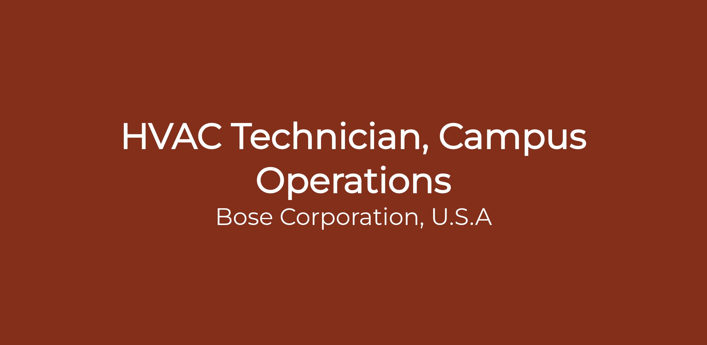 Bose is looking for a skilled HVAC Technician to join our Facilities team. In this role, you'll be key to ensuring the reliable operation and maintenance of all mechanical systems across five buildings on our campus. If you're a hands-on, licensed expert in HVAC and Refrigeration and committed to keeping our facilities running smoothly, we want to hear from you.