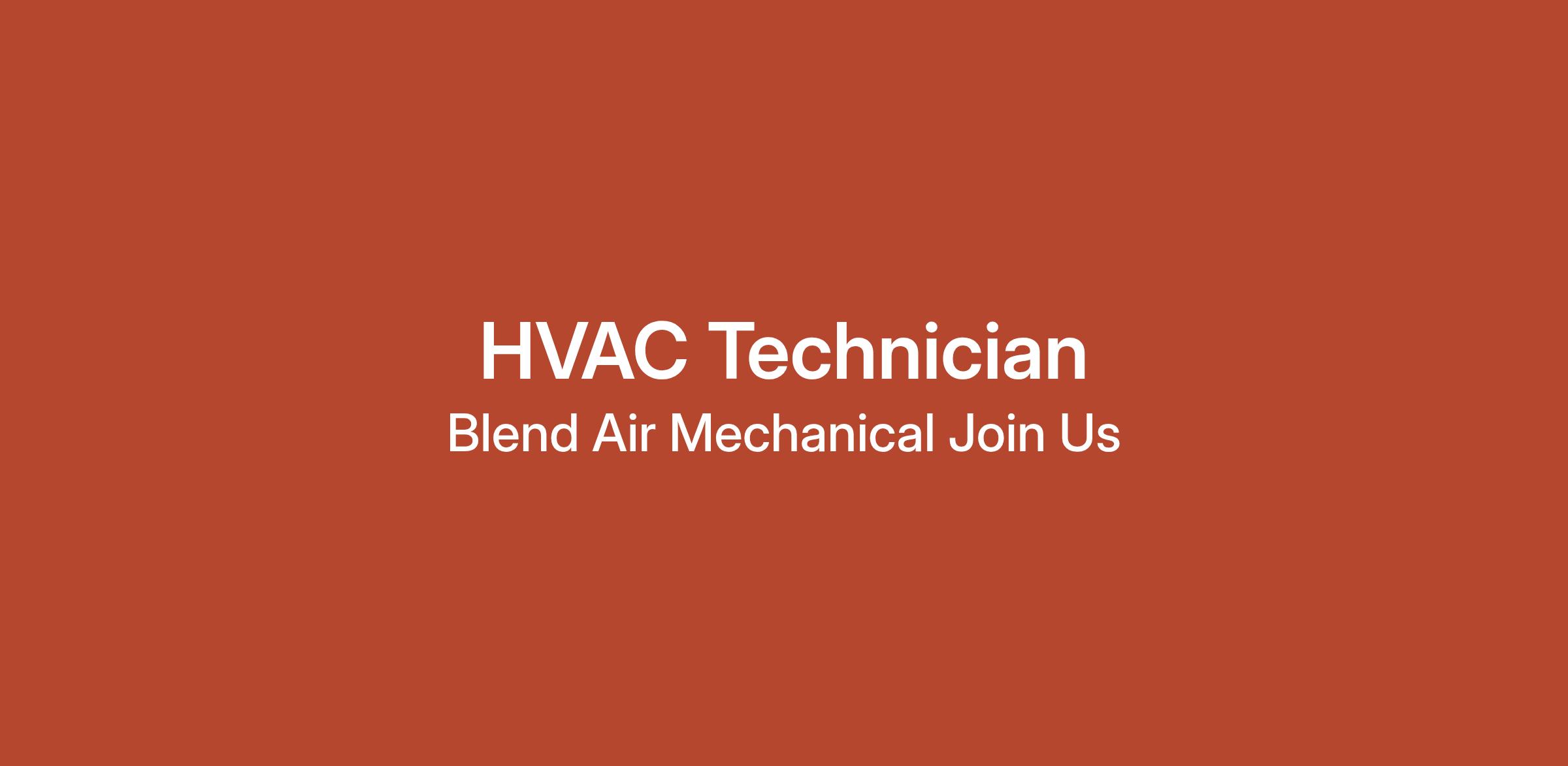 Blend Air Mechanical is an equal opportunity/affirmative action employer. All qualified applicants will receive consideration for employment without regard to sex, gender identity, sexual orientation, race, color, religion, national origin, disability, protected Veteran status, age, or any other characteristic protected by law.