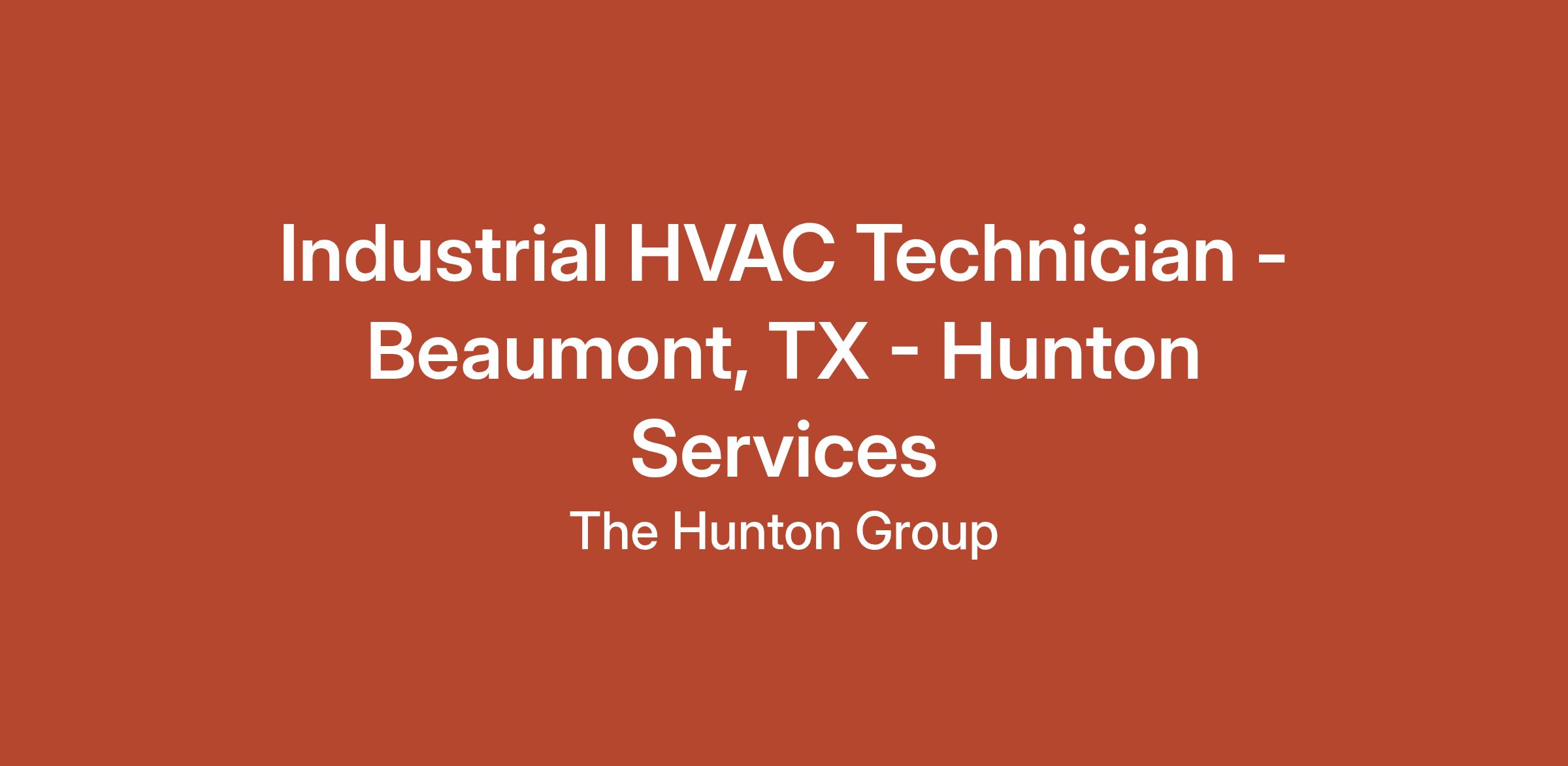 Hunton Services, a division of the Hunton Group in Houston, TX, is seeking to hire an experienced Industrial HVAC Technician with expertise in servicing, repairing, and maintaining Industrial A/C equipment in and around Beaumont and Port Arthur. Ideal candidate must have previous experience servicing package and split systems, wall mount systems, mini-split systems, and will need to manage healthy customer relationships, have professional and effective communication skills, be proactive in conflict resolution, and be safety conscious.