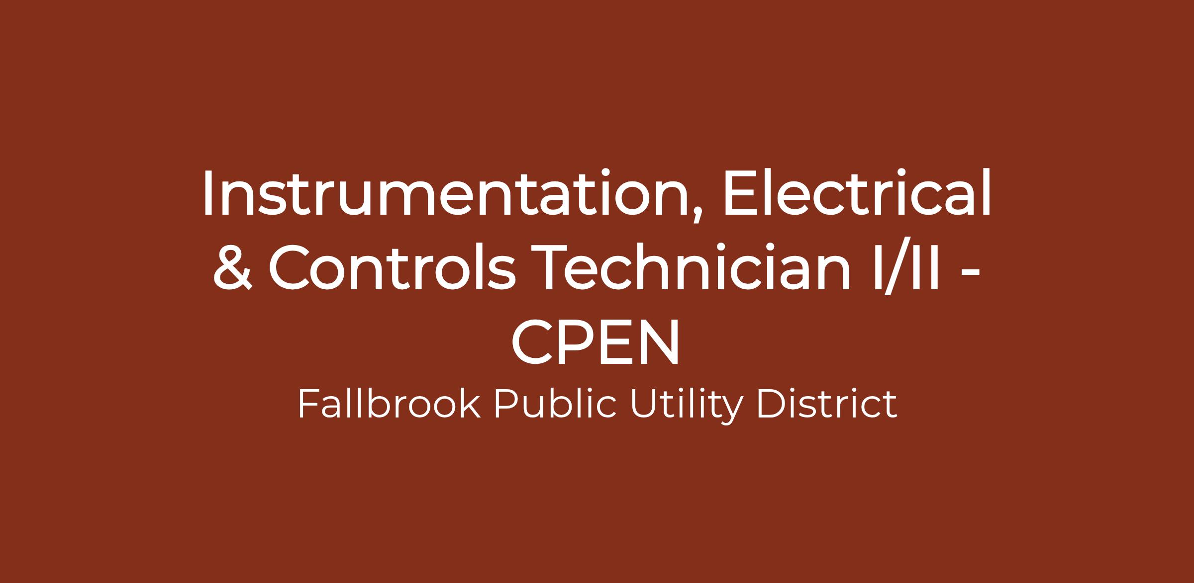 Instrumentation, Electrical and Controls Technician I - This is the entry-level position and is distinguished from the journey-level position by the performance of less than the full range of duties assigned to the II level. Incumbent works under immediate supervision while learning job tasks, progressing to general supervision as procedures and processes of assigned area of responsibility are learned.