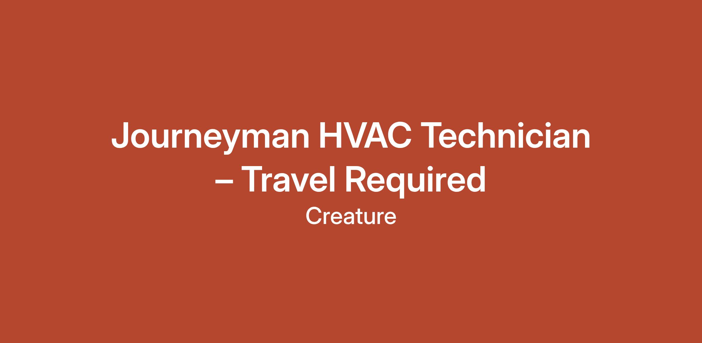 Journeyman HVAC Technician – Travel Required