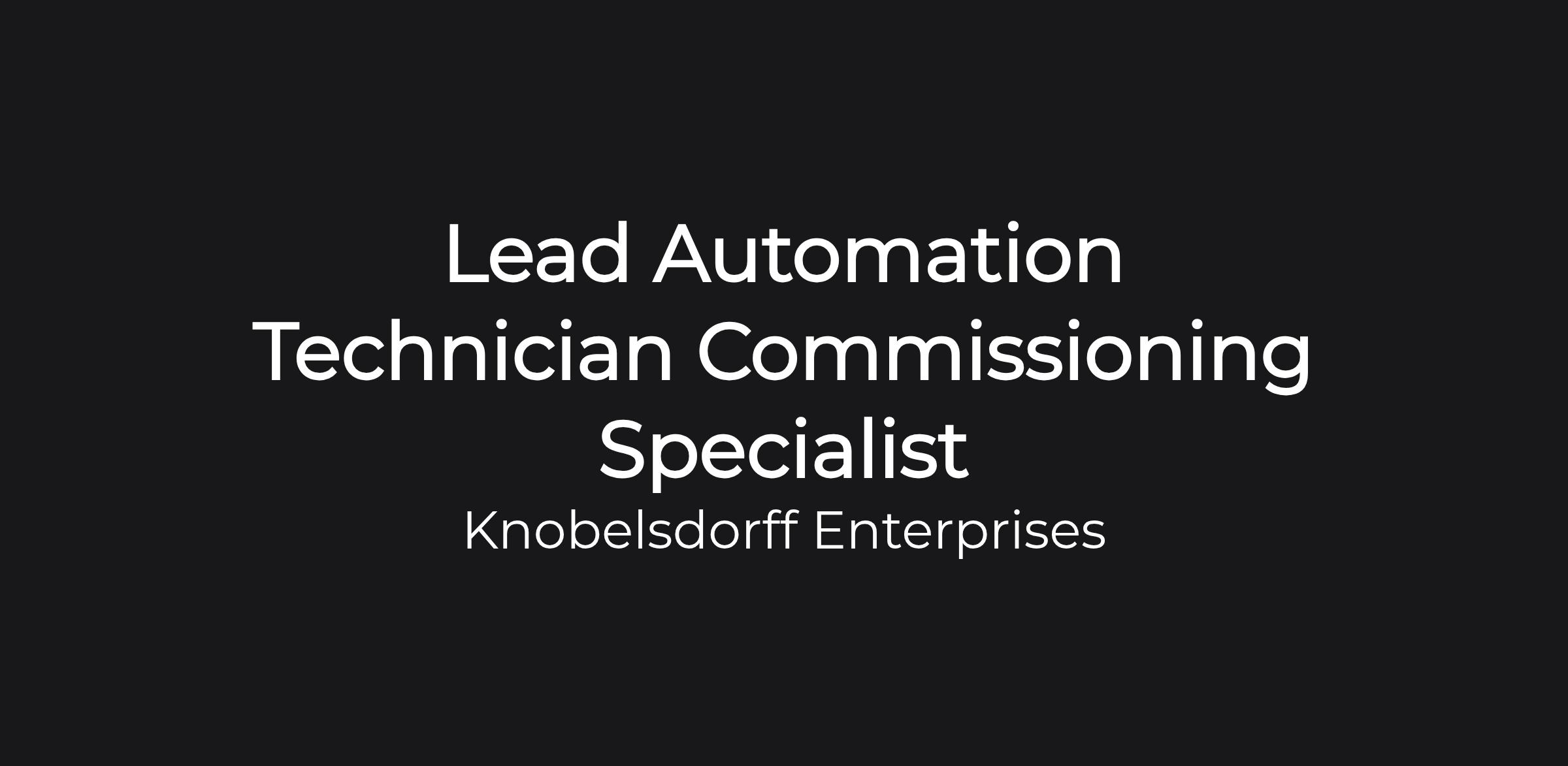 The Lead Automation Technician – Commissioning supports the goals of the Automation division by leading onsite commissioning and startup activities for industrial and mission‑critical automation systems. This role plays a key part in delivering high‑quality, reliable control systems by ensuring automation, instrumentation, and industrial networks are installed, tested, and validated to project specifications.