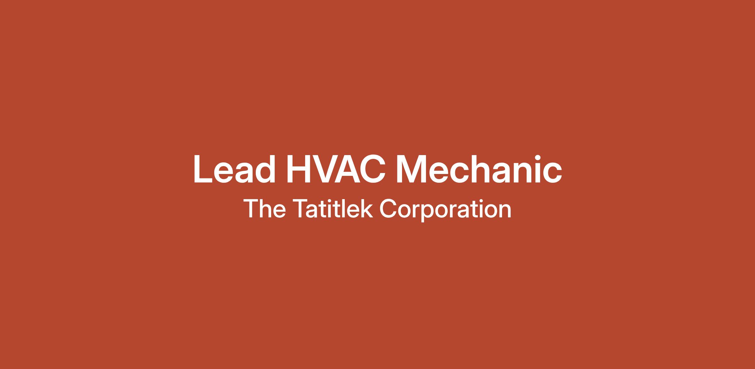 The Lead HVAC Mechanic is responsible for carrying out all the duties and responsibilities of an HVAC mechanic at the Master level.