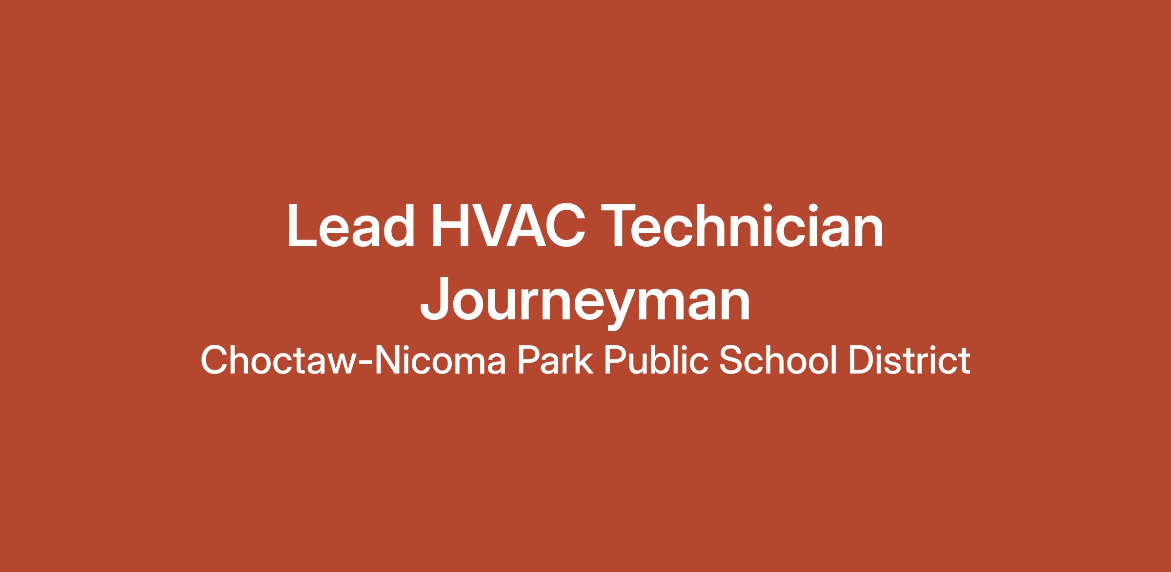 POSITION: Lead HVAC Technician Journeyman