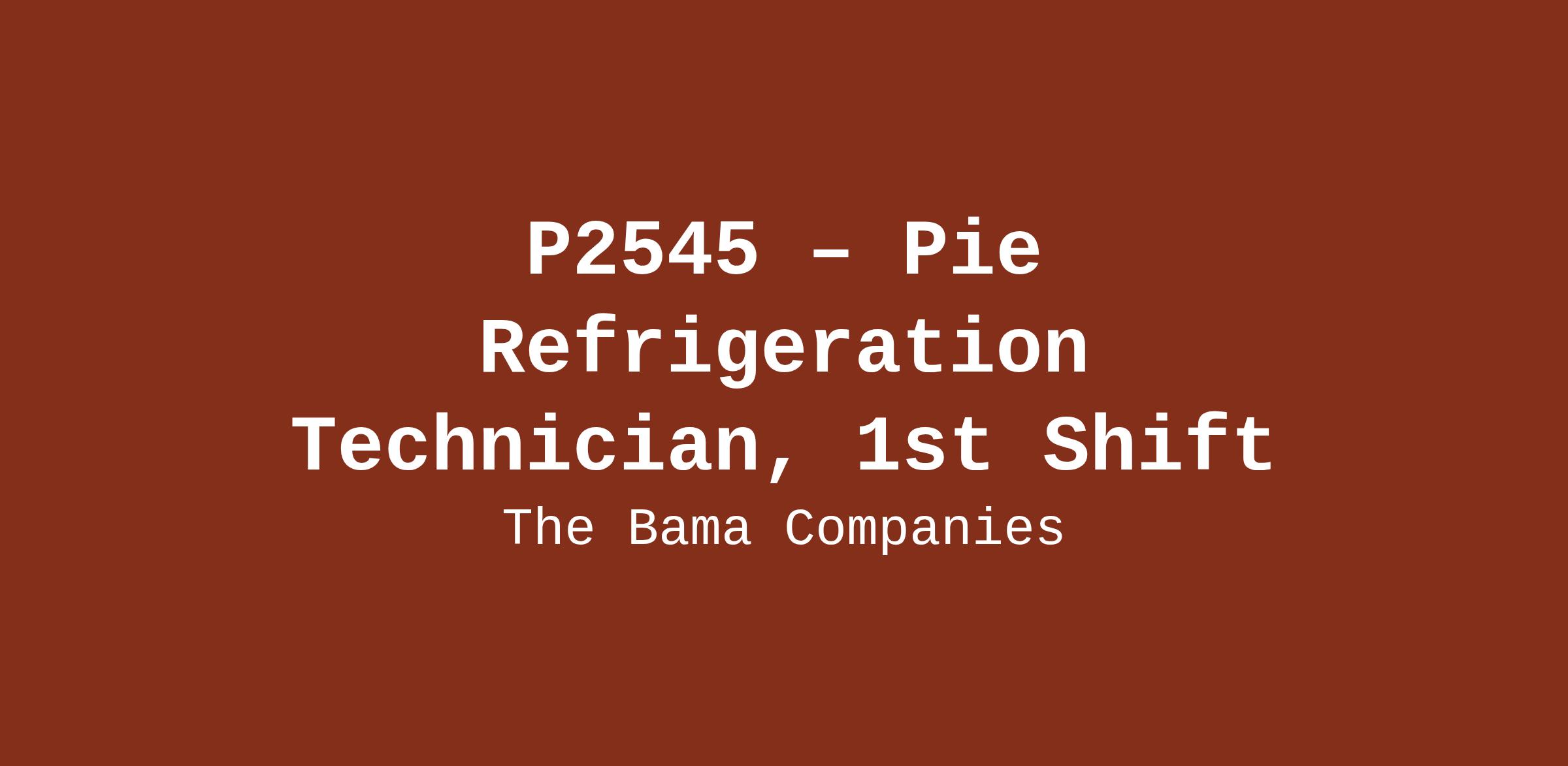 P2545 – Pie Refrigeration Technician, 1st Shift