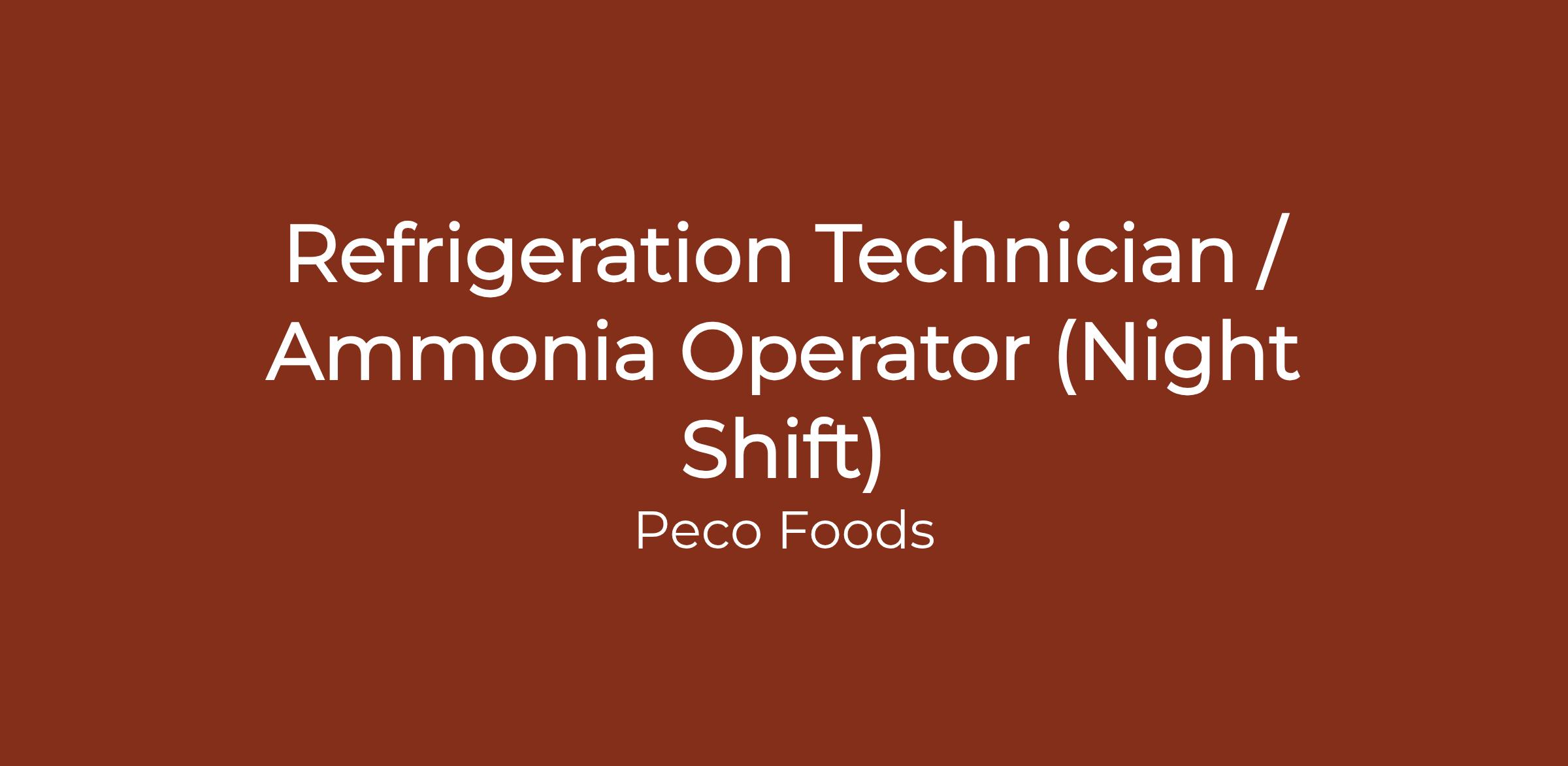 - Experience with operation & maintaining ammonia refrigeration systems in excess of 10,000 pounds of ammonia.