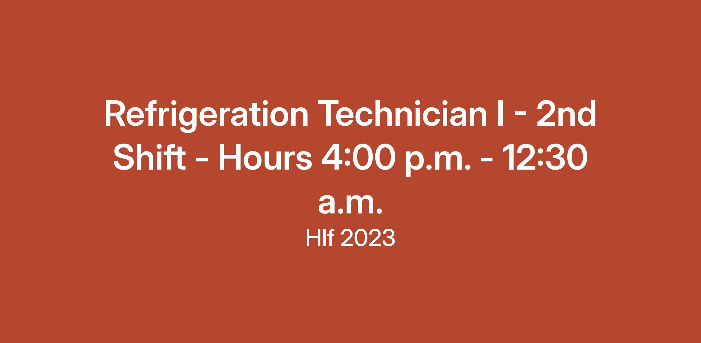 Refrigeration Technician I - 2nd Shift - Hours 4:00 p.m. - 12:30 a.m.