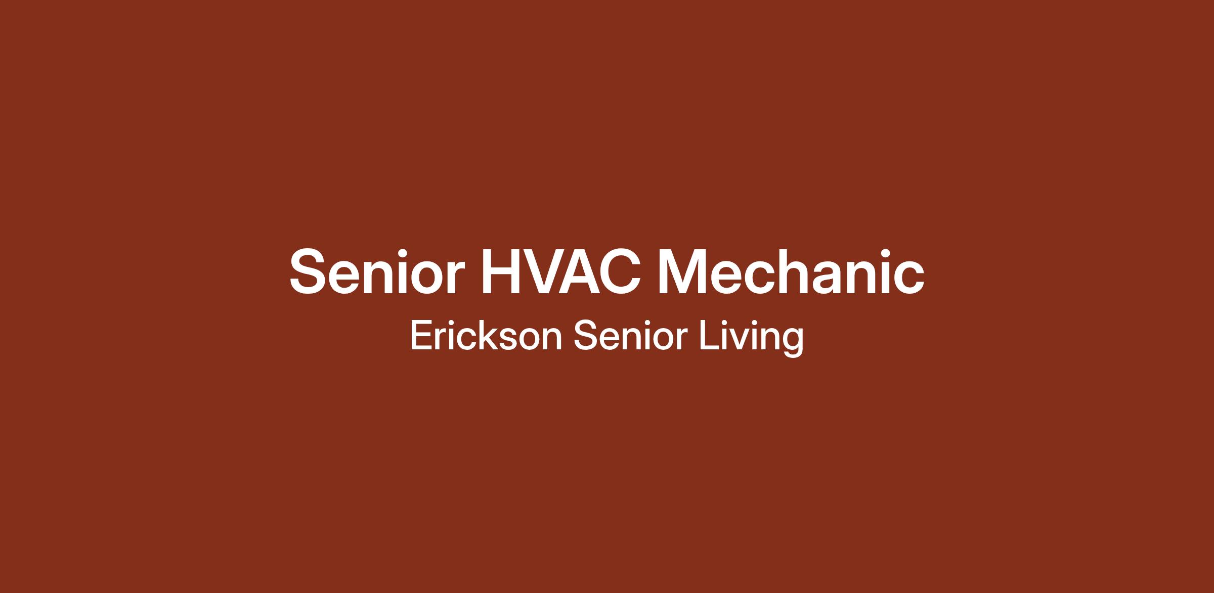 Greenspring Village by Erickson Senior LivingJoin our team as a Senior HVAC Technician, where you will ensure the safe operation and maintenance of HVAC equipment, including heat pumps, refrigeration, PRV valves, cooling towers, pumps, motors, hot water systems, and building automation systems, providing a comfortable and safe environment for our residents.