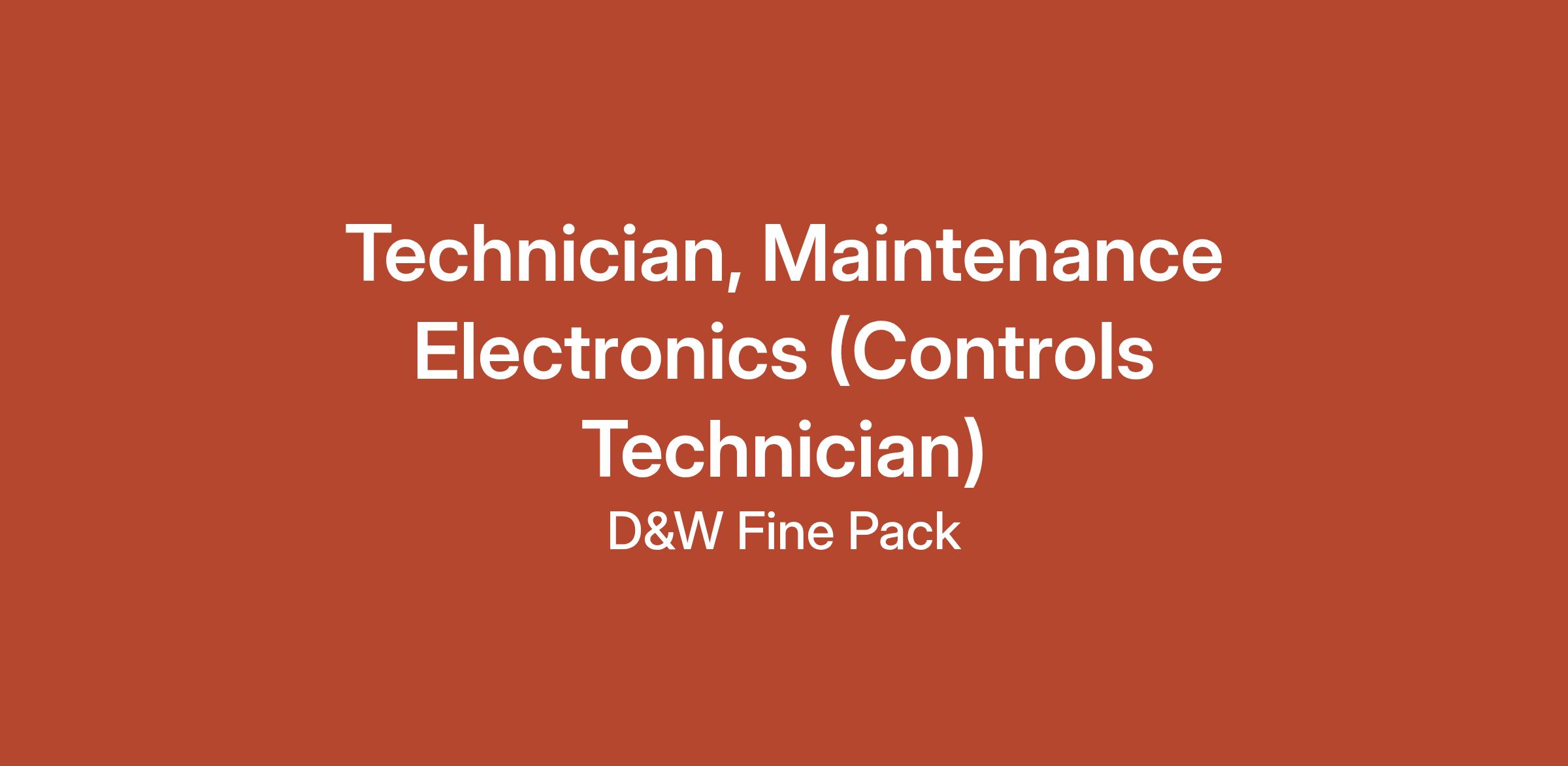 We have an immediate opportunity for a Maintenance Electronics/Controls Technician.